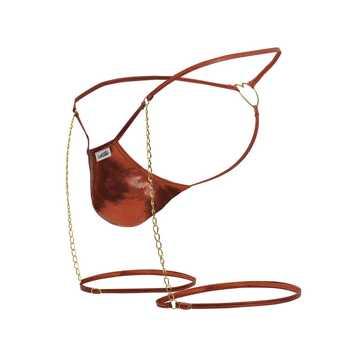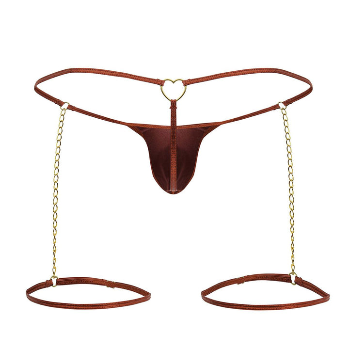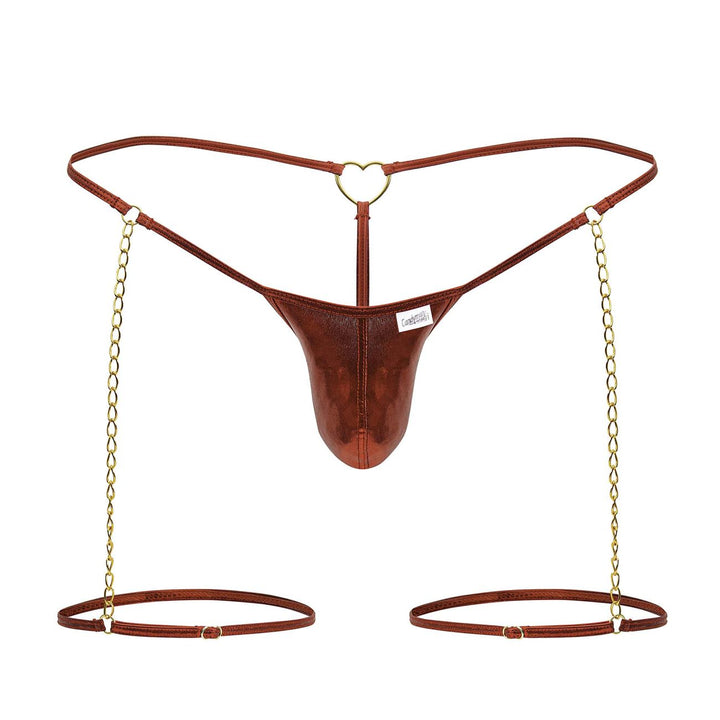 Dare to go bold! This ultra-revealing black thong with gold chain garter details is designed for those who own their confidence. With a sleek wet-look pouch, delicate chain accents, and a heart-shaped ring in the back, this piece is a showstopper from every angle. Sensual, daring, and unforgettable!