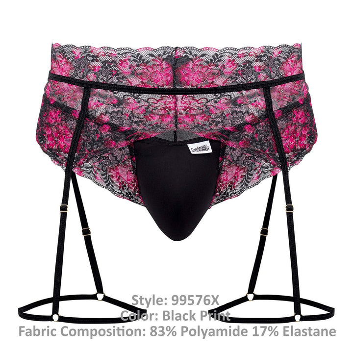 CandyMan 99576X Lace Garter Thongs Color Black Print