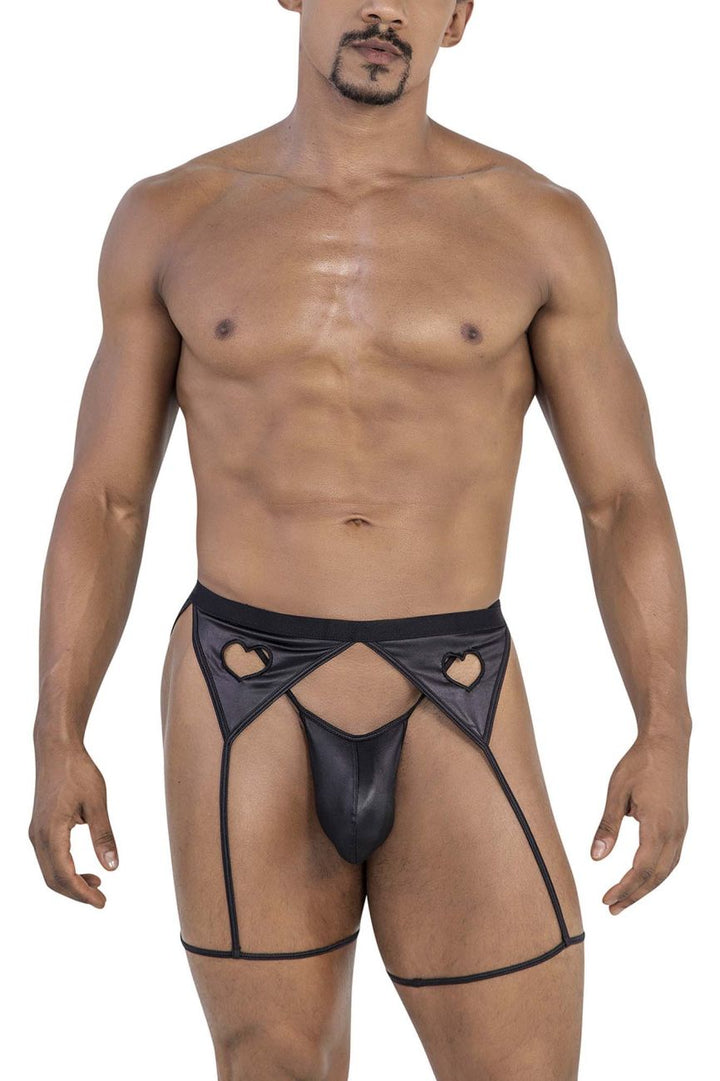 This daring men’s garter set by CandyMan combines fetish-inspired design with playful cut-out details. Featuring a structured waistband with two heart-shaped cut-outs, the set creates a bold and provocative look. The attached straps mimic the aesthetic of traditional garters, connecting to a thong back that offers minimal coverage. Made from sleek, stretchy fabric, this piece is perfect for those who enjoy edgy and adventurous underwear styles that make a statement.