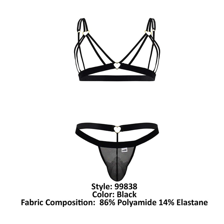 Unleash your inner seduction! This ultra-daring sheer thong and harness set is designed for those who love to command attention. Featuring a sheer mesh pouch, adjustable straps, and a bold multi-strap chest harness, this set brings together edgy design and irresistible confidence. With gold ring accents tying it all together, this look is all about owning the moment.