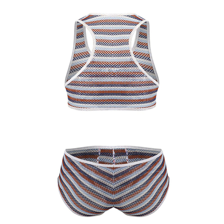 Make a bold statement! The CandyMan 99859 Striped Mesh Set is a daring yet playful ensemble that redefines confidence and style. Featuring a sporty racerback crop top and matching low-rise shorts, this set blends a retro vibe with modern sensuality. The semi-sheer striped mesh fabric enhances your physique while keeping you cool and comfortable.