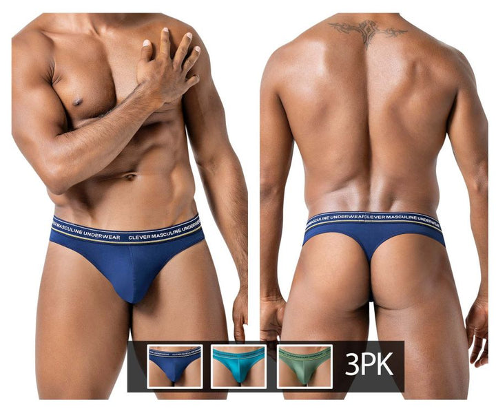 The Clever 3-Pack Thong Set blends everyday comfort with sexy minimalism. Featuring three sleek tones—navy, aqua, and sage—each thong is crafted in ultra-soft stretch microfiber and topped with a bold branded waistband that declares masculine energy. With a low-rise fit and enhancing pouch, this pack is made for men who want style that stands out and supports.