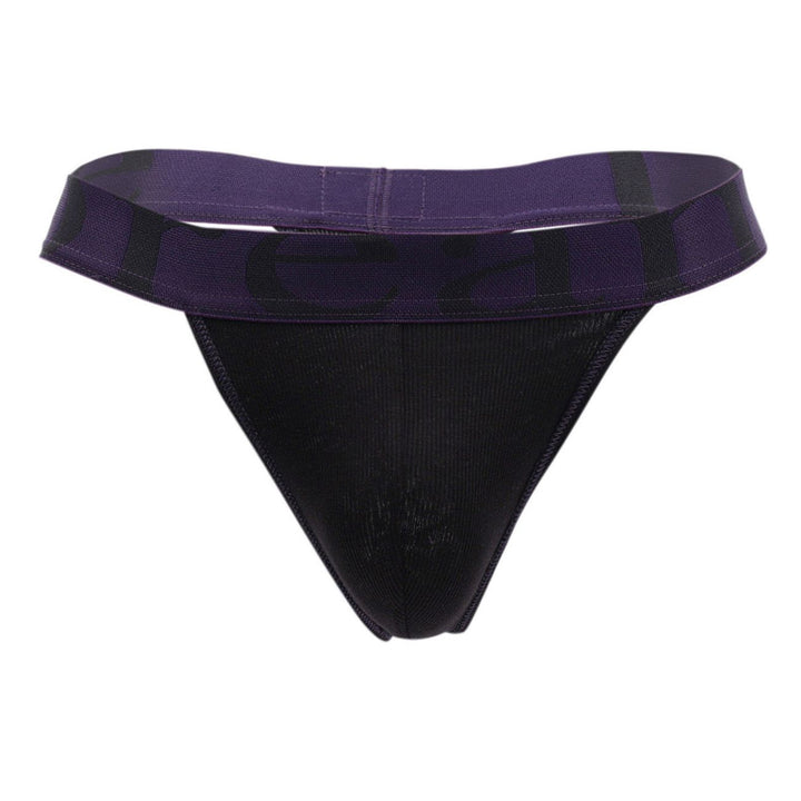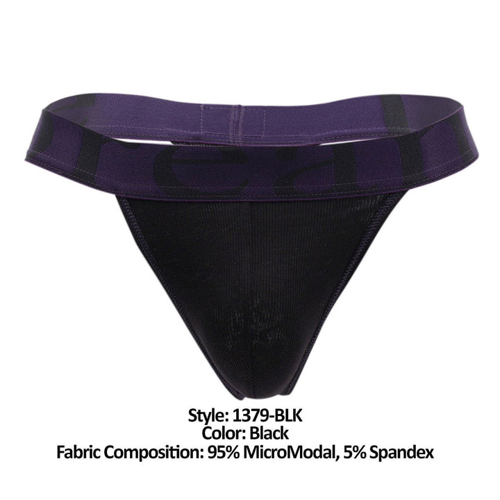 1379-BLK Micromodal Thong provides coverage only where it counts, and with a tough, sporty edge. It's made from a super smooth sports microfiber that fits nice and snug, keeping a trim look under clothes and showing off a bit of skin. Wear when you dare. Contrast border and waistband.