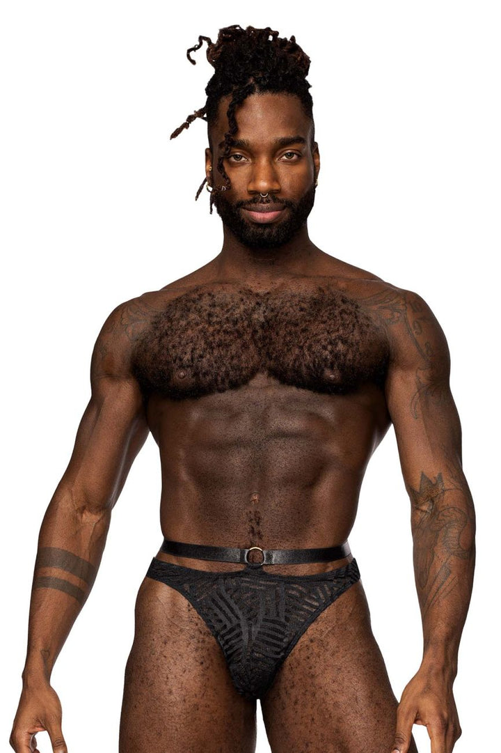 From the Rude Awakening collection by Male Power, the Strap Thong features a full coverage pouch with a floating satin finish ringed waistband. Classic 1 inch back and sides. Sheer stretch mesh with an eclectic cutout pattern throughout. Plush satin finished waistband and straps.