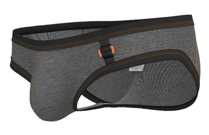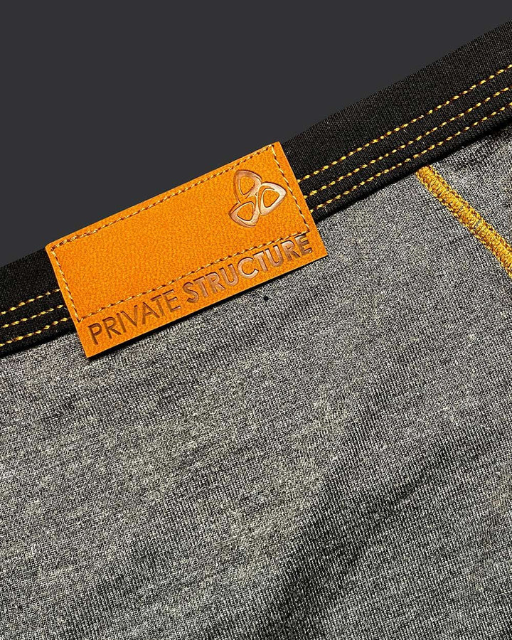These men's briefs from Private Structure feature a stylish fabric with contrasting black trim details, giving them a modern and rugged look. The soft, stretchable material ensures a comfortable and breathable fit, while the low-rise cut provides a sleek silhouette. A small metallic buckle accent on the front and a leather brand tag on the back add a touch of uniqueness to the design.